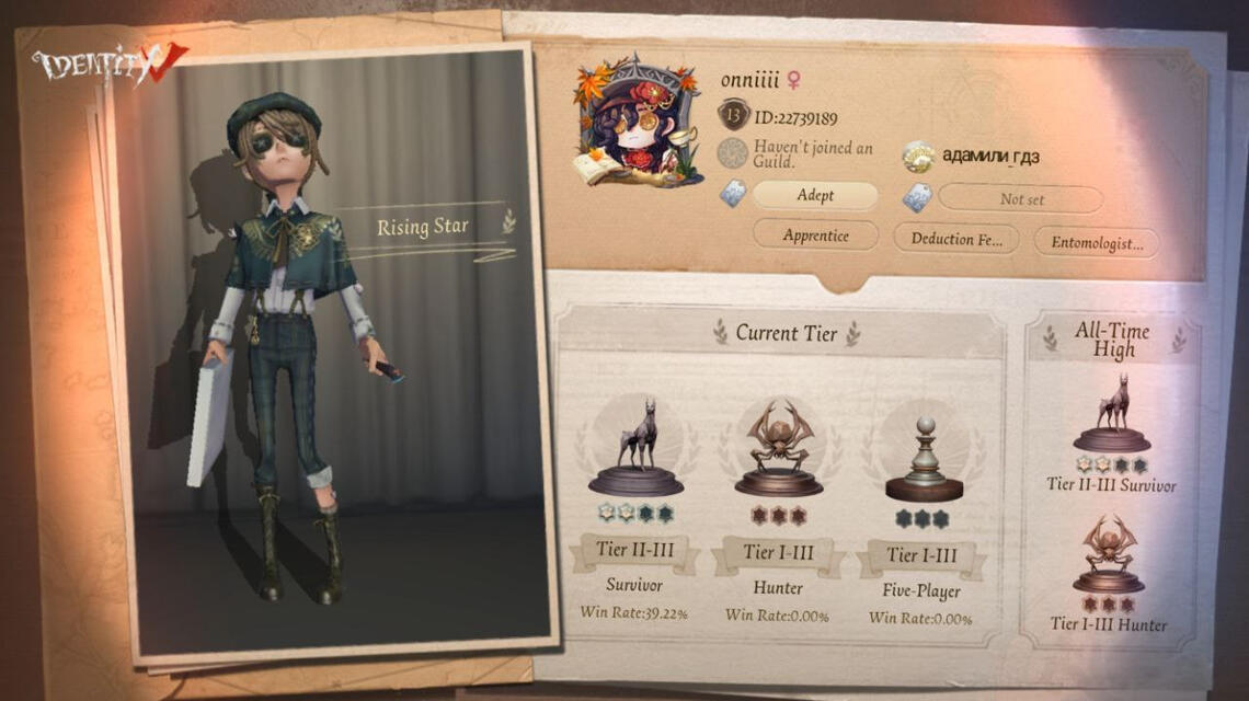 Также играю за: Эдгар (Художник), Эндрю (Могильщик), Эли (Провидец)Люблю ранги и дуо хантерс. Есть медальки на Мэлли за хорошую игру, учусь кайтить и пытаюсь понять какова моя роль^^